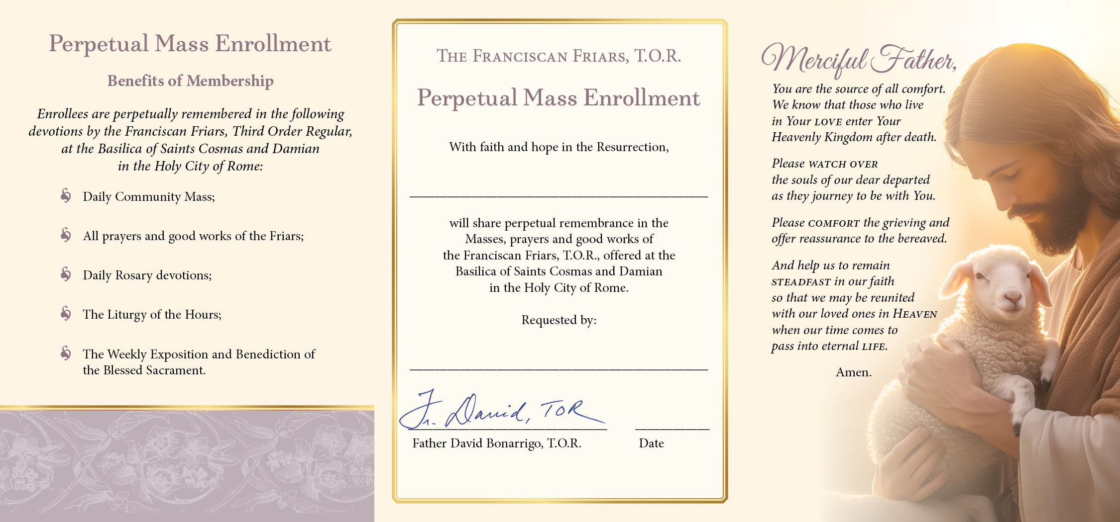 Use this card to announce your enrollment of a deceased loved one in our St. Francis Perpetual Mass Association. Those enrolled will share perpetual remembrance in the Masses of the Franciscan Friars.